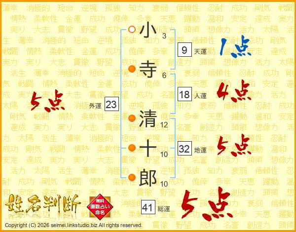 小寺清十郎さんの総運は41画の5点!