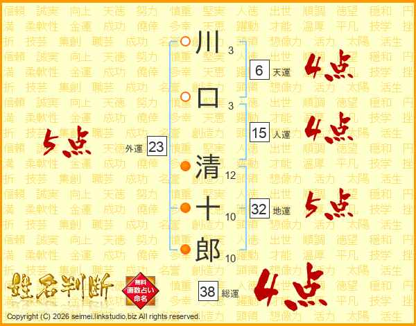 川(3画)口(3画) 清(12画)十(10画)郎(10画)