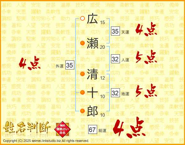 広(15画)瀬(20画) 清(12画)十(10画)郎(10画)