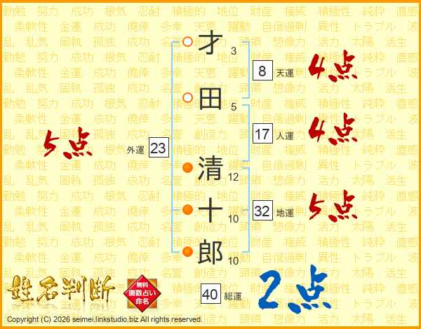 才田清十郎さんの外運は23画の5点!