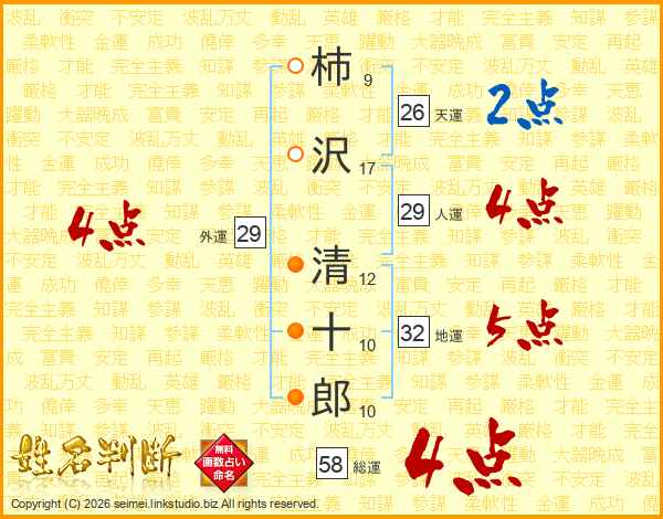 柿沢清十郎さんの天運は26画の2点!