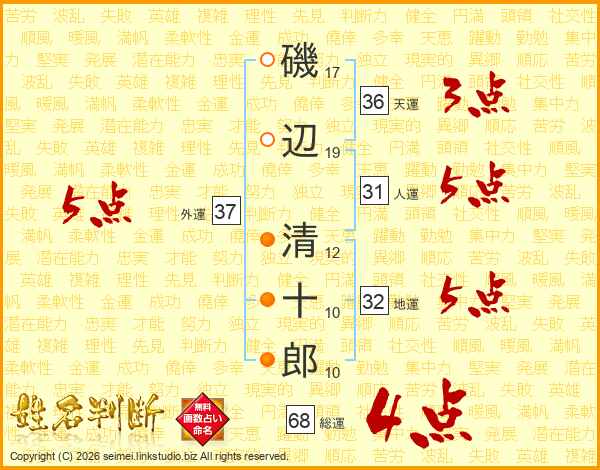 磯(17画)辺(19画) 清(12画)十(10画)郎(10画)