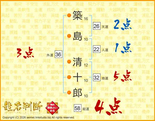 築島清十郎さんの総運は58画の4点!