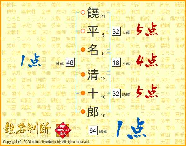 饒(21画)平(5画)名(6画) 清(12画)十(10画)郎(10画)