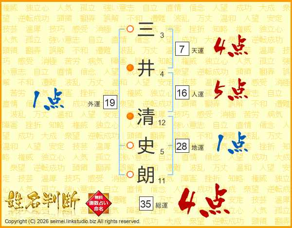 三井清史朗さんの総運は35画の4点!