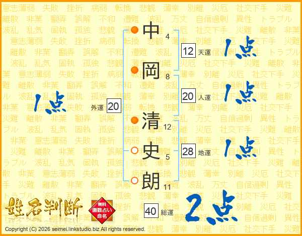 中岡清史朗さんの人運は20画の1点!