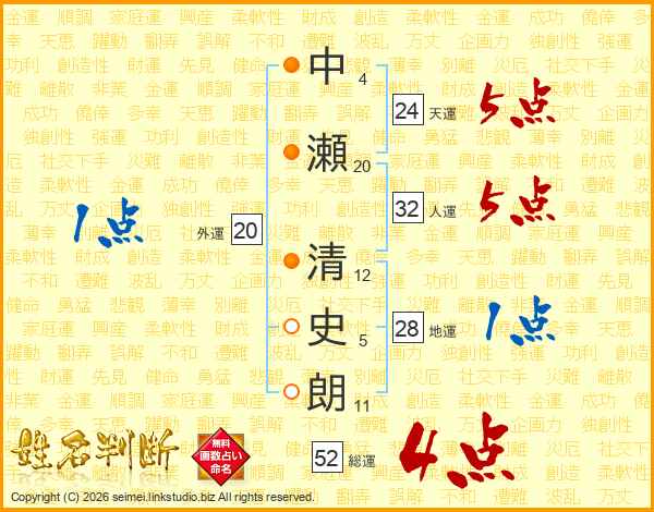 中瀬清史朗さんの総運は52画の4点!