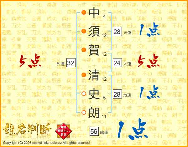 中須賀清史朗さんの外運は32画の5点!