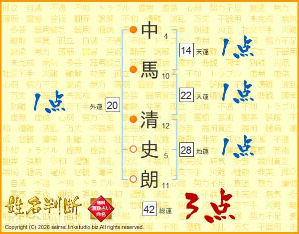 中馬清史朗さんの天運は14画の1点!