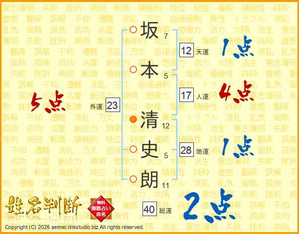 坂本清史朗さんの人運は17画の4点!