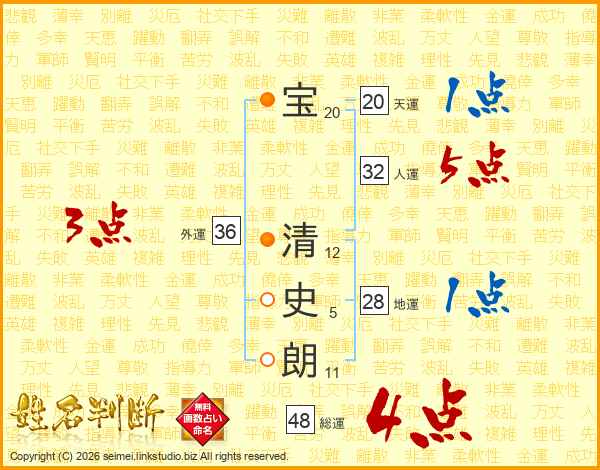 宝清史朗さんの総運は48画の4点!