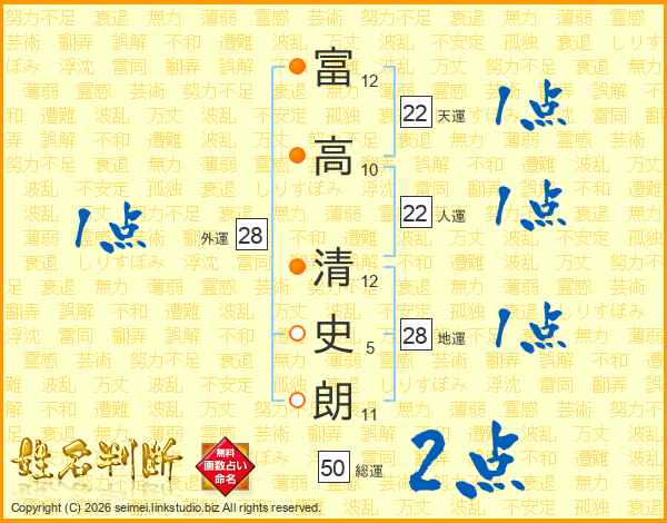 富高清史朗さんの人運は22画の1点!