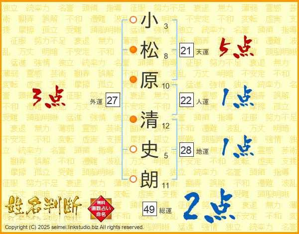 小松原清史朗さんの天運は21画の5点!