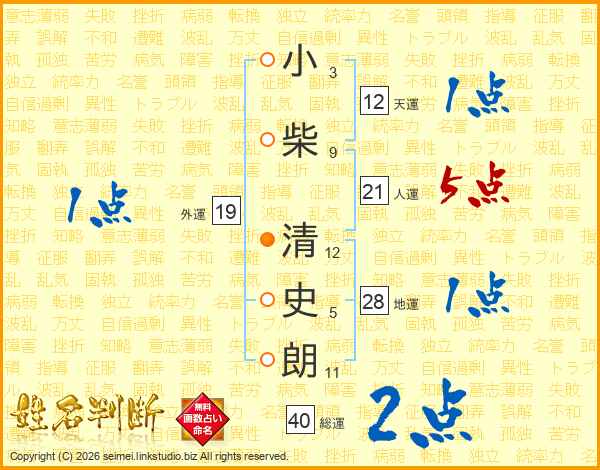 小柴清史朗さんの人運は21画の5点!