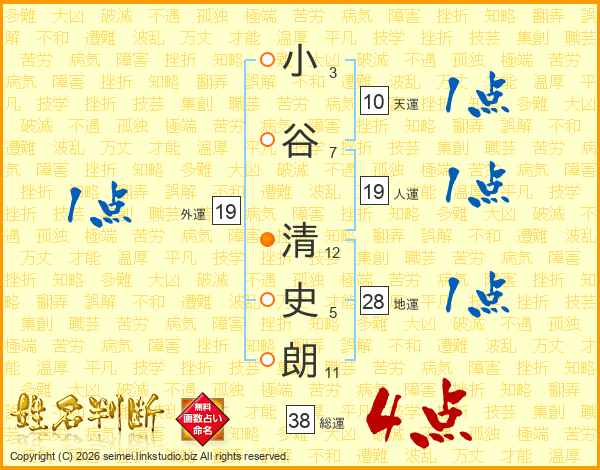 小谷清史朗さんの総運は38画の4点!