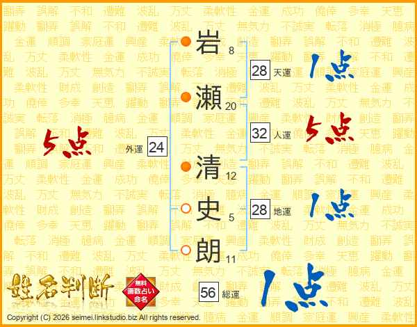 岩瀬清史朗さんの総運は56画の1点!