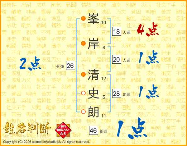 峯岸清史朗さんの天運は18画の4点!