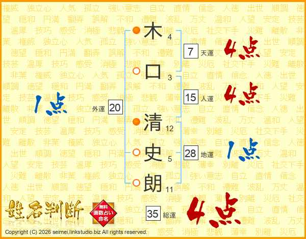 木口清史朗さんの総運は35画の4点!