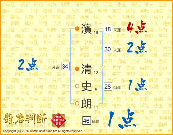 濱清史朗さんの総運は46画の1点!