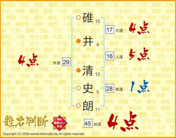 碓井清史朗さんの総運は45画の4点!