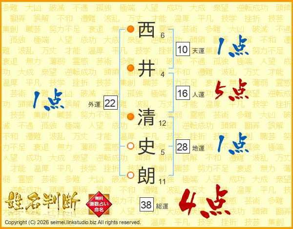 西井清史朗さんの人運は16画の5点!