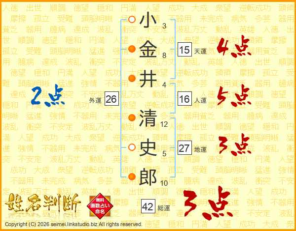 小金井清史郎さんの総運は42画の3点!
