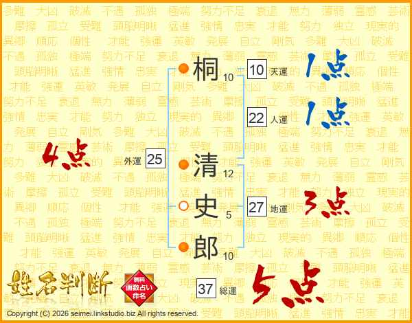 桐清史郎さんの総運は37画の5点!