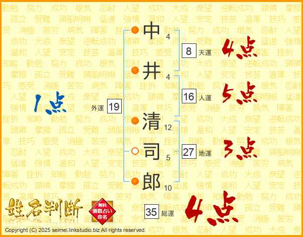 中(4画)井(4画) 清(12画)司(5画)郎(10画)