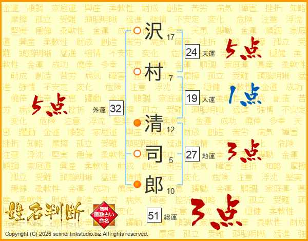 沢村清司郎さんの外運は32画の5点!