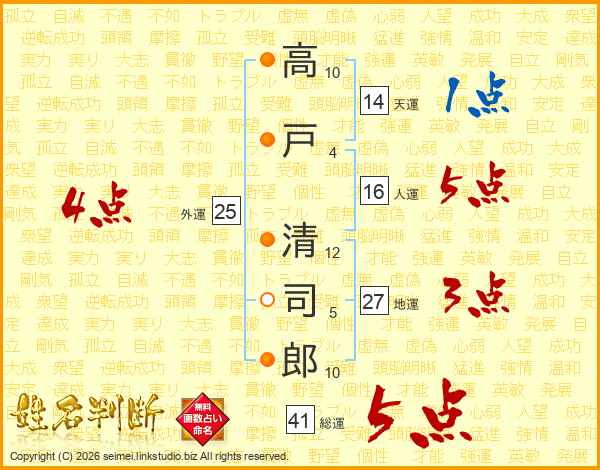 高戸清司郎さんの総運は41画の5点!