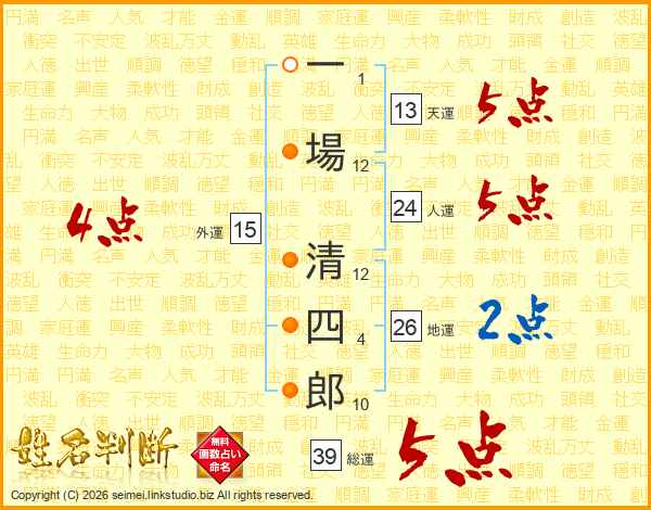 一場清四郎さんの総運は39画の5点!