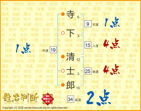 寺下清士郎さんの人運は15画の4点!