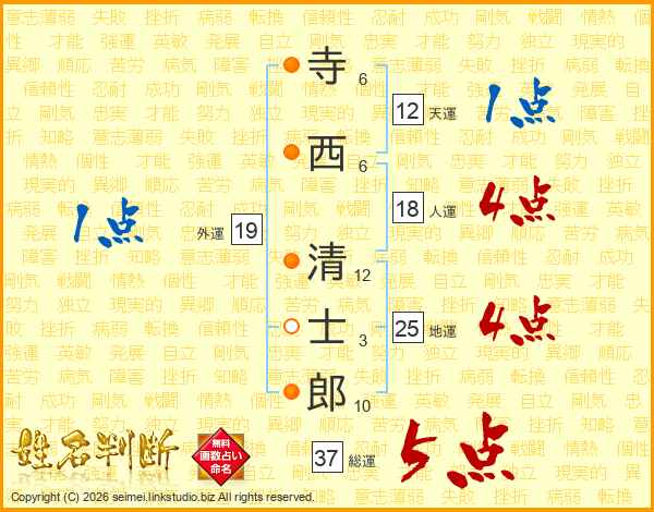 寺(6画)西(6画) 清(12画)士(3画)郎(10画)