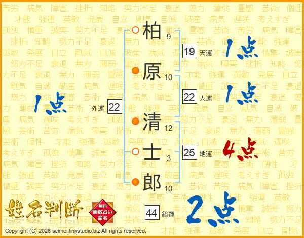 柏原清士郎さんの総運は44画の2点!