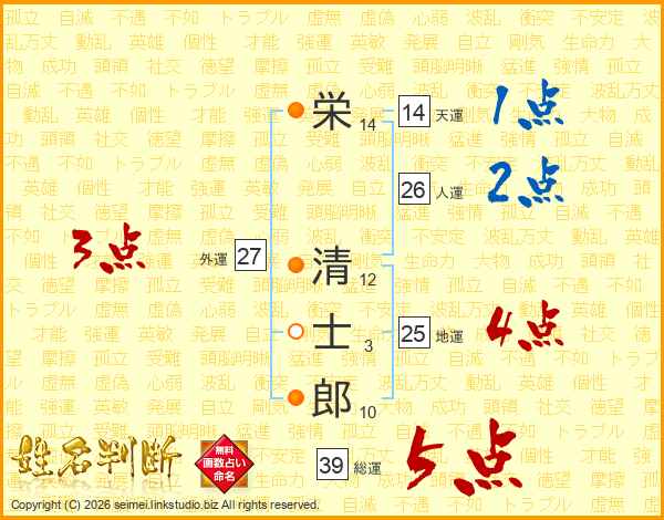 栄清士郎さんの総運は39画の5点!