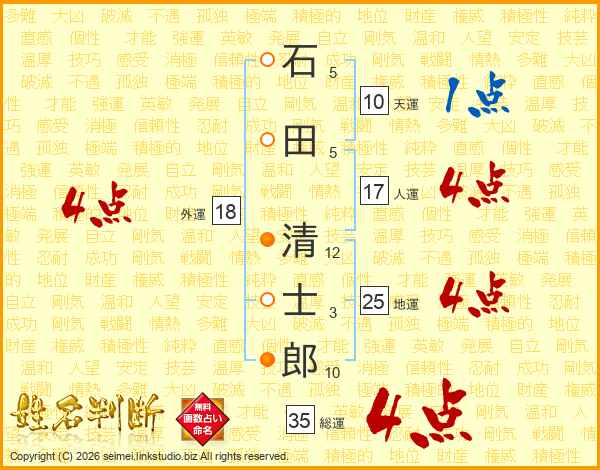 石田清士郎さんの総運は35画の4点!