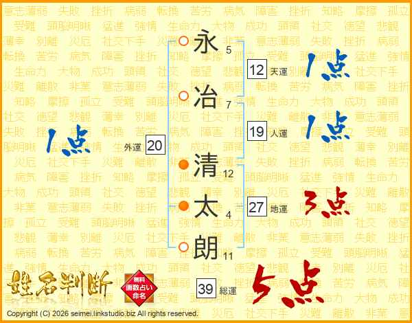 永冶清太朗さんの総運は39画の5点!