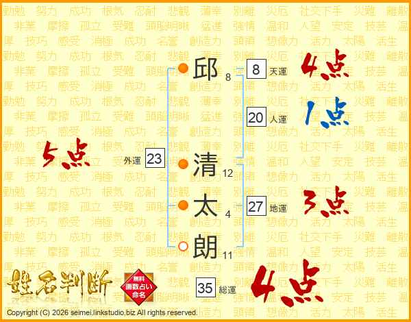 邱清太朗さんの総運は35画の4点!