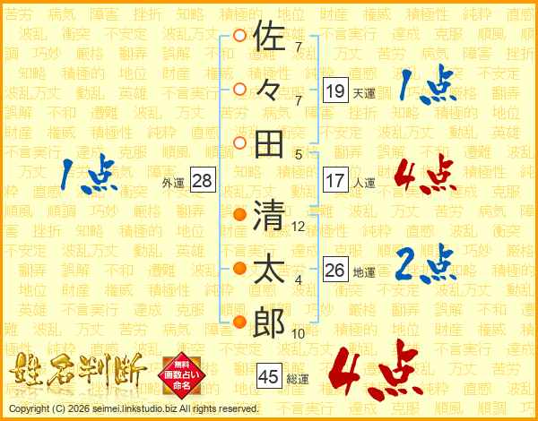 佐々田清太郎さんの天運は19画の1点!