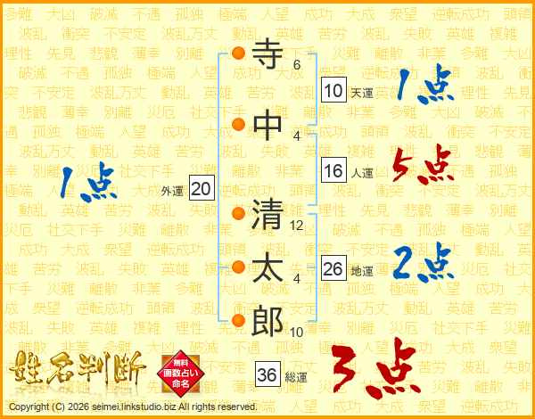 寺中清太郎さんの総運は36画の3点!