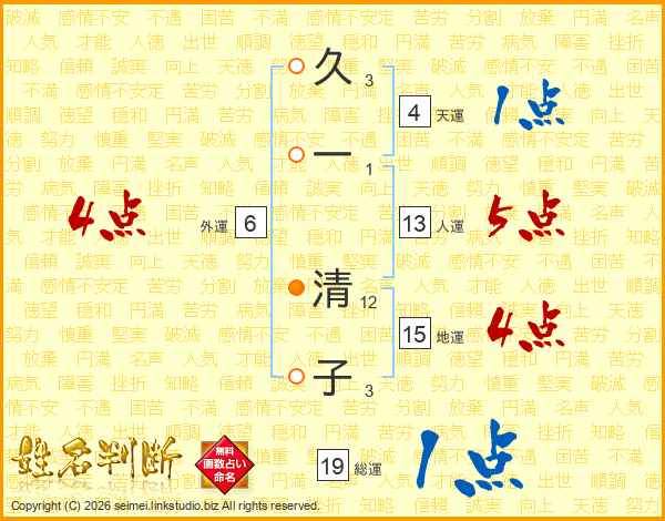 久一清子さんの総運は19画の1点!