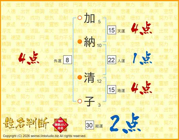 加納清子さんの総運は30画の2点!