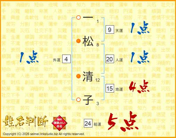 一松清子さんの総運は24画の5点!