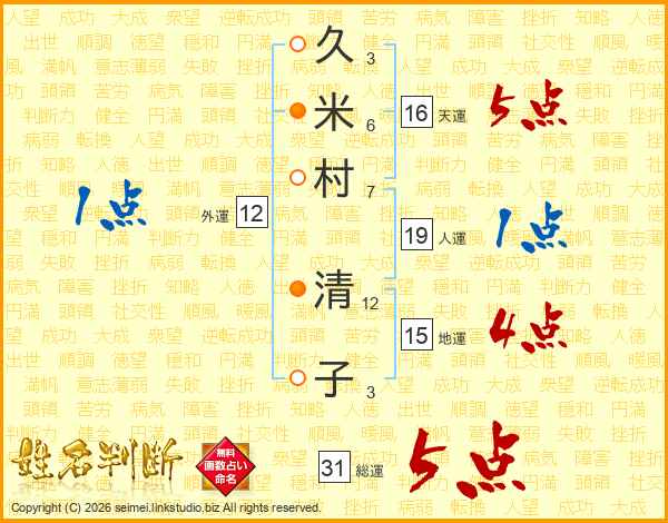 久(3画)米(6画)村(7画) 清(12画)子(3画)