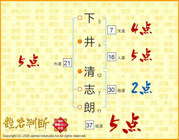 下(3画)井(4画) 清(12画)志(7画)朗(11画)
