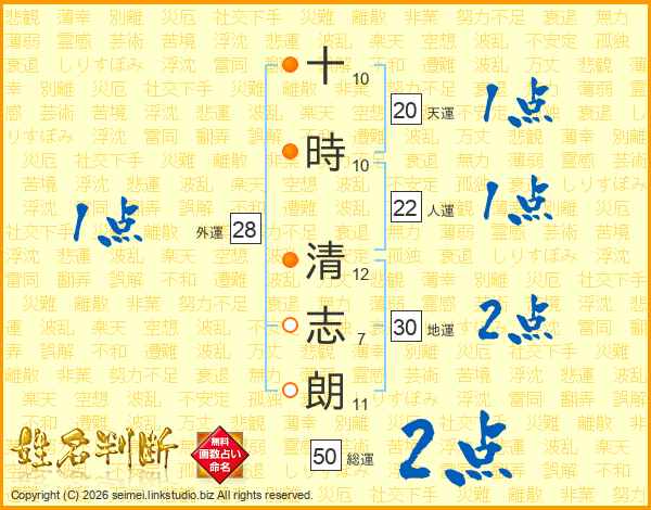 十(10画)時(10画) 清(12画)志(7画)朗(11画)