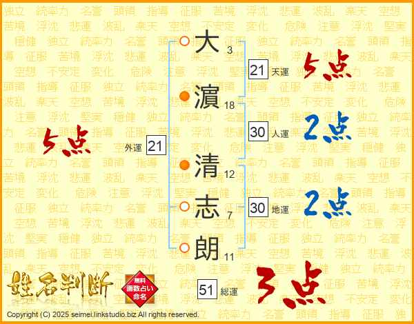 大(3画)濵(18画) 清(12画)志(7画)朗(11画)