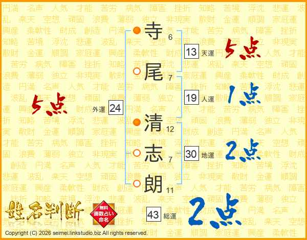 寺尾清志朗さんの総運は43画の2点!