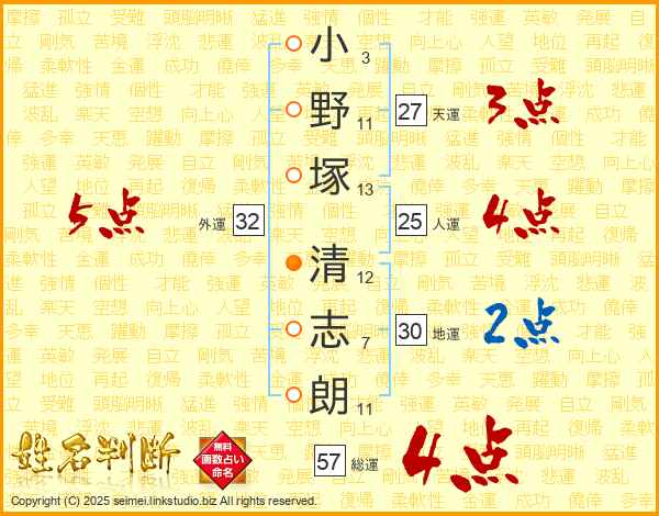 小野塚清志朗さんの総運は57画の4点!
