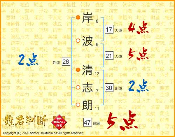 岸波清志朗さんの総運は47画の5点!